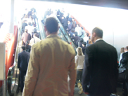 The crowded of people going to the exhibition hall |