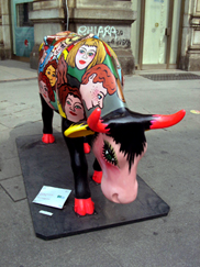 There are a lot of designed cows. |